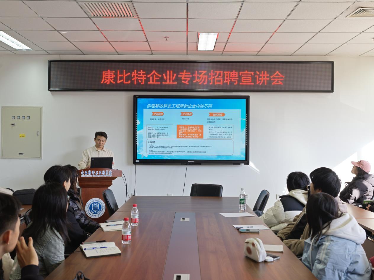 近日,食品科学与工程学院特别邀请北京康比特体育科技股份有限公司举办专场招聘宣讲会。康比特人力资源经理胥万幸,食品学院党委副书记、副院长张文娜、辅导员官凌霄以及2026届毕业生共同参加了此次会议。