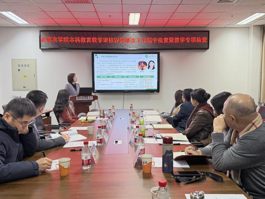 食品学院教学副院长魏颖从审核评估中期整改进展情况、2025年重点工程完成情况、教学专项自查情况、国际办学人才培养质量四个方面系统阐述。学院表示,将以此次检查为契机,持续深化本科教育教学改革创新,强化教学质量过程管理。
