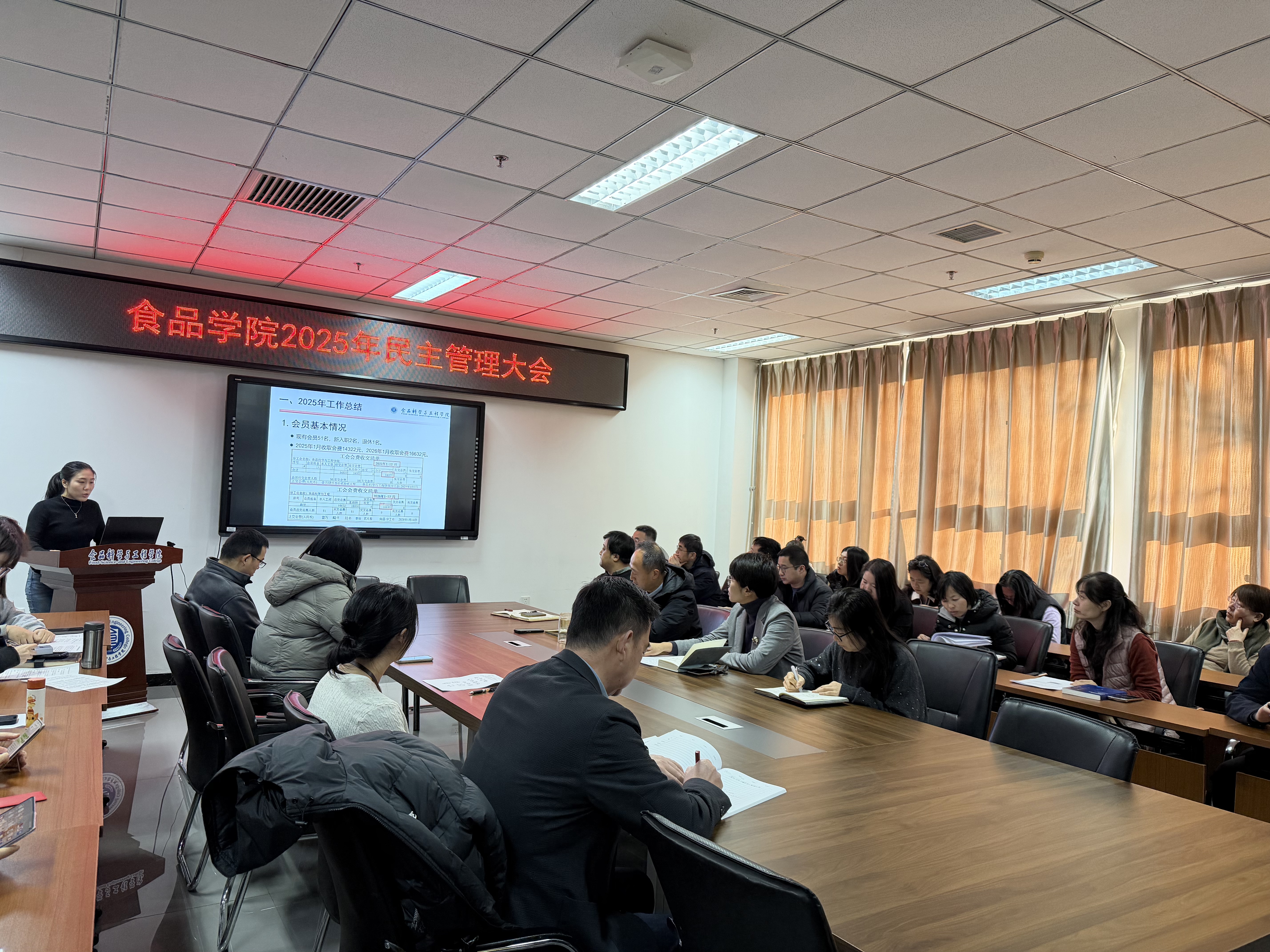 1月21日,食品科学与工程学院召开2025年度教职工民主管理大会。会议由分工会主席王昊然主持,全体教职工参加会议。
